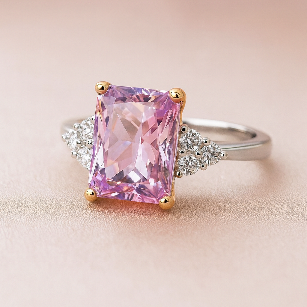 Пръстен от бяло и розово злато с розов сапфир и диаманти 7.70 карата