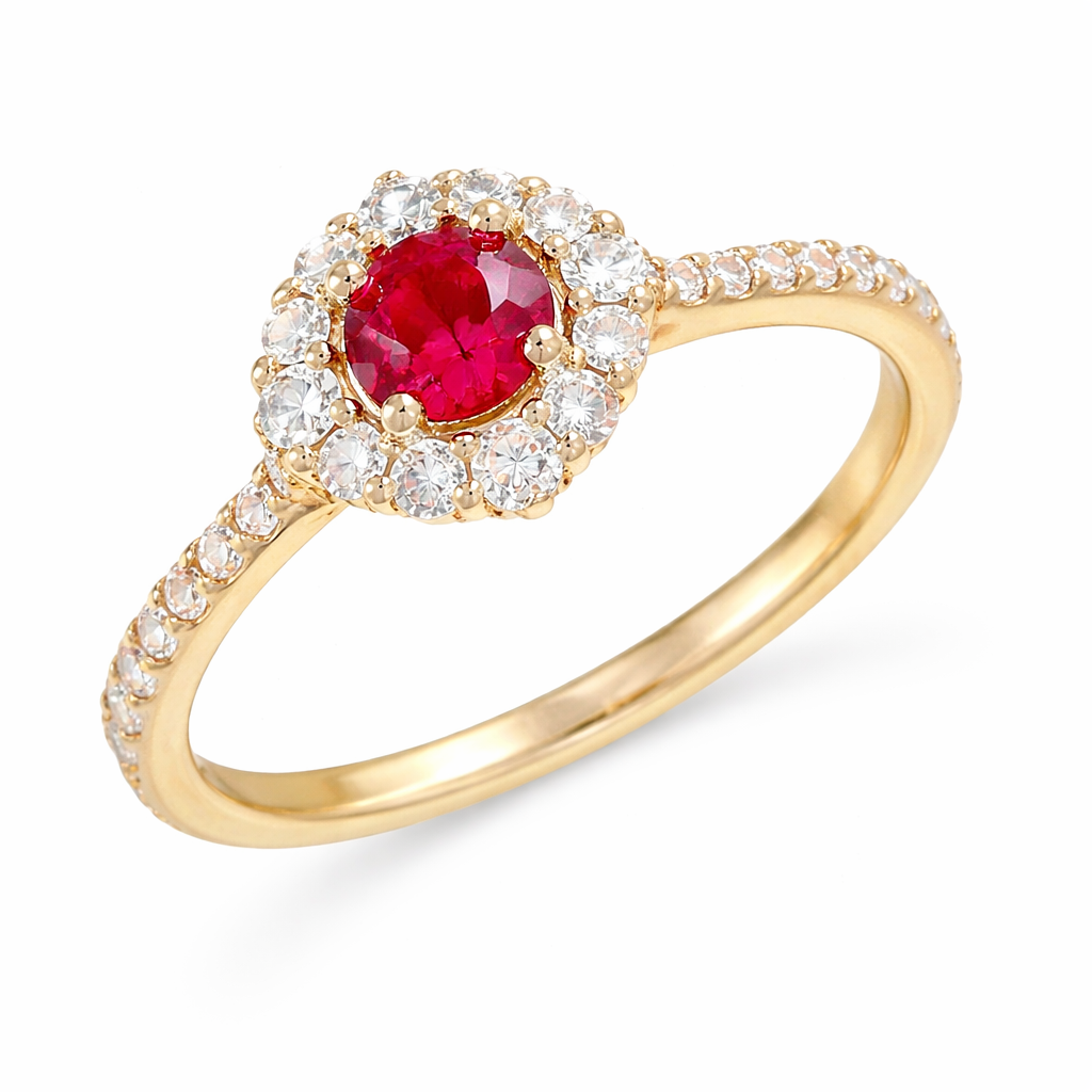 Пръстен от розово злато с рубин и диаманти 0.90 карата