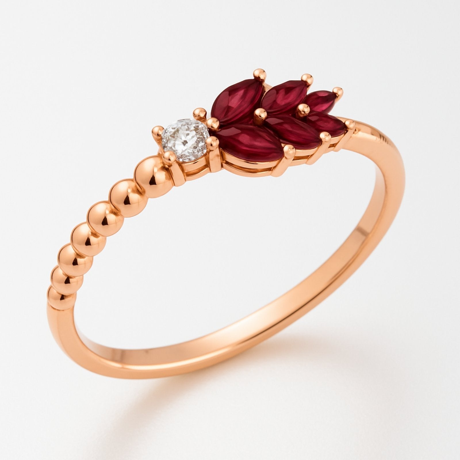 Дамски пръстен розово злато с диаманти и рубини 0.34 карата