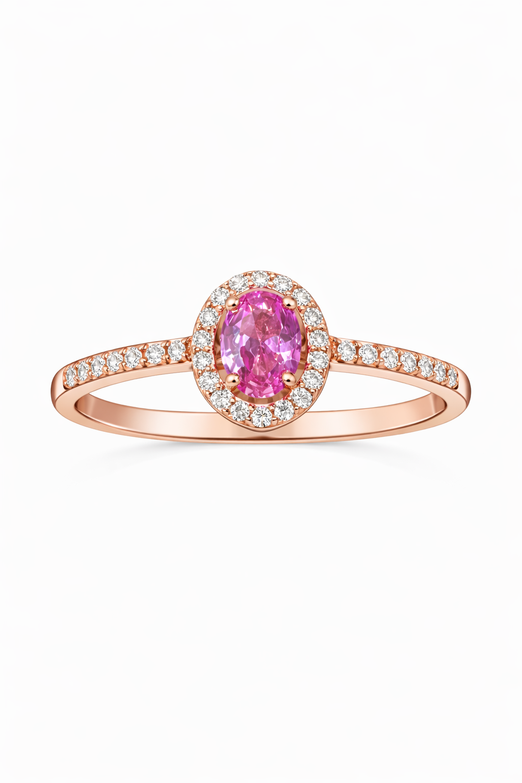 Диамантен пръстен от розово злато с розов сапфир 1.04 карата