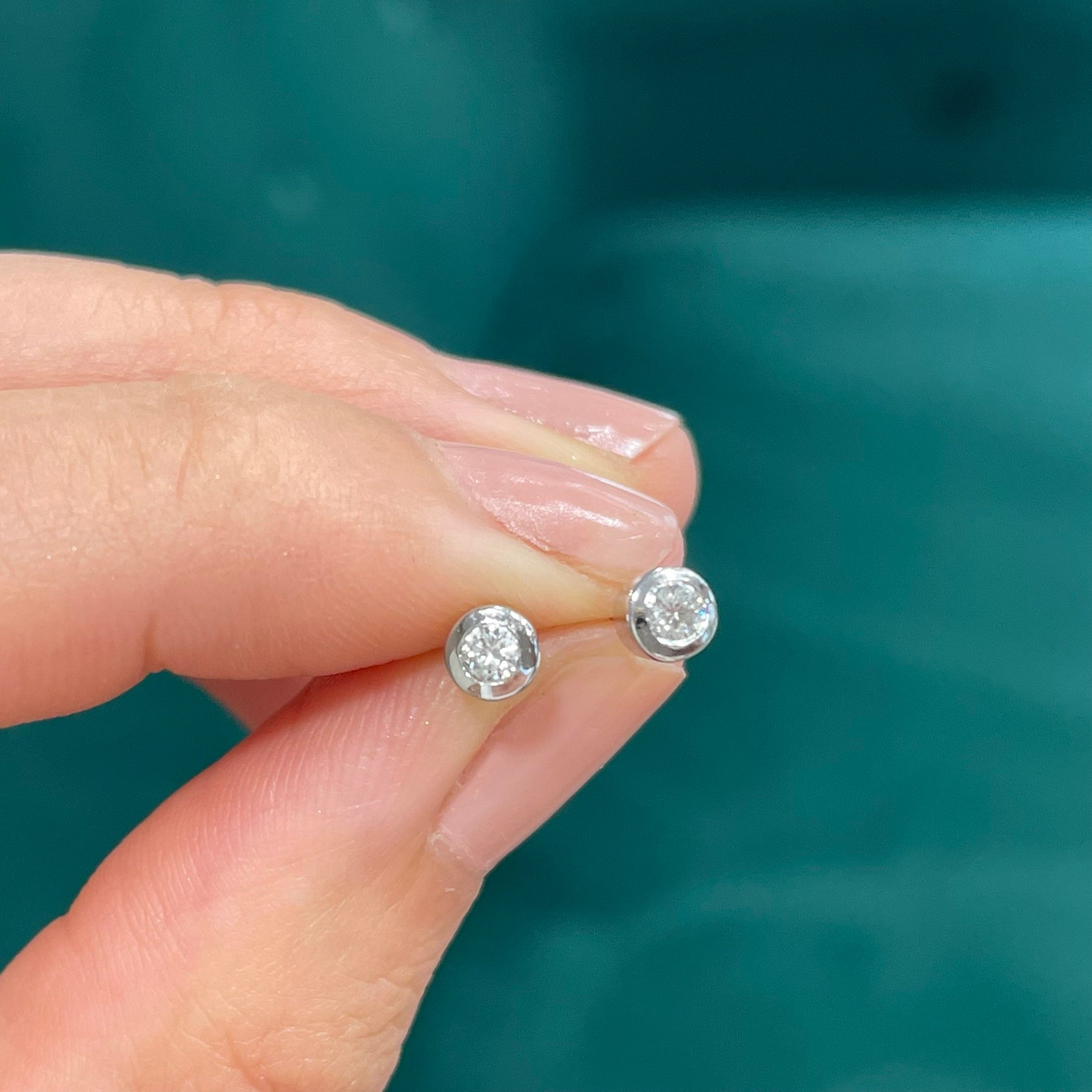 Обеци от бяло злато с диаманти в обков 0.12 карата Black Friday -25%