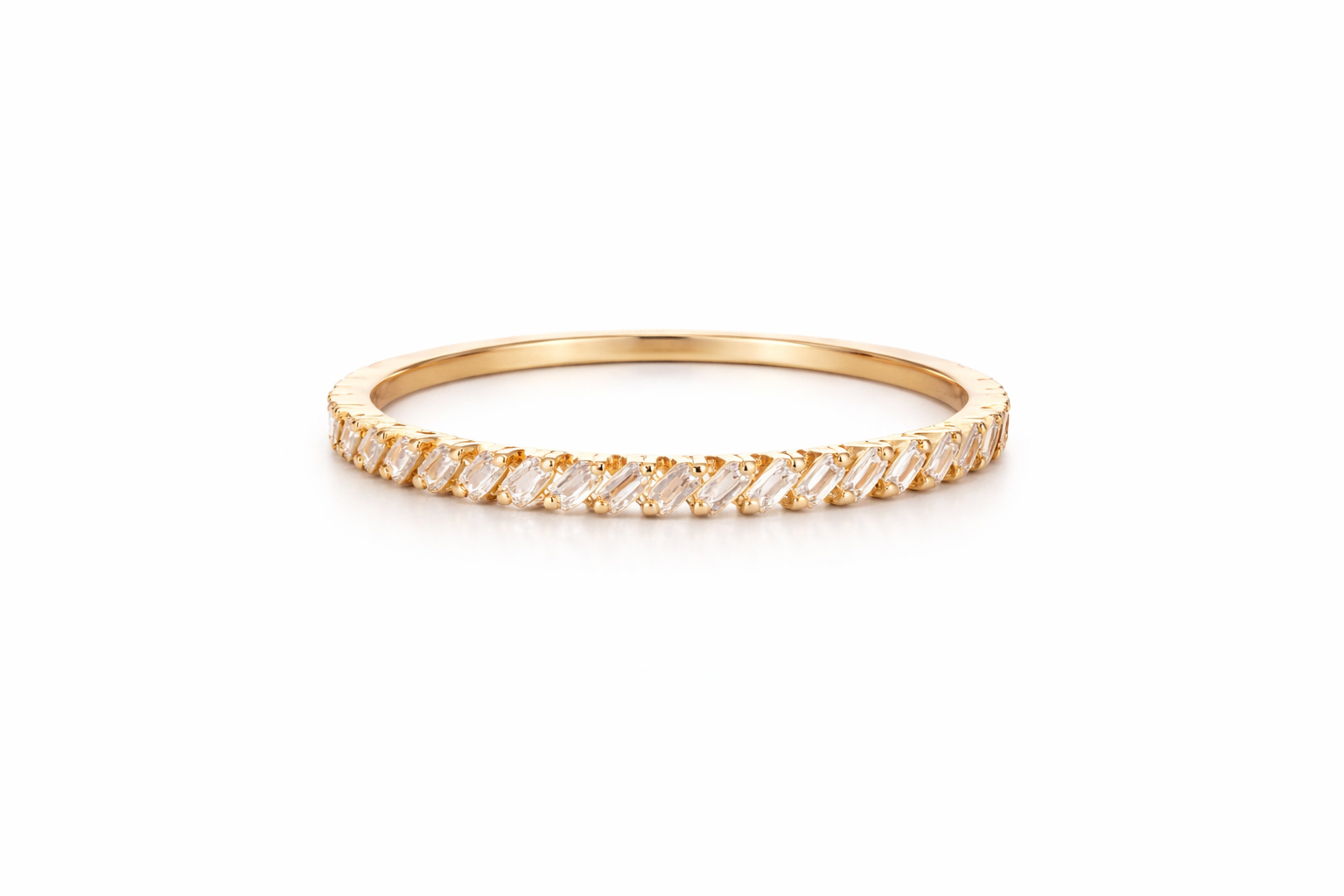 White gold ring with sapphire and baguette diamonds 0.67 carats