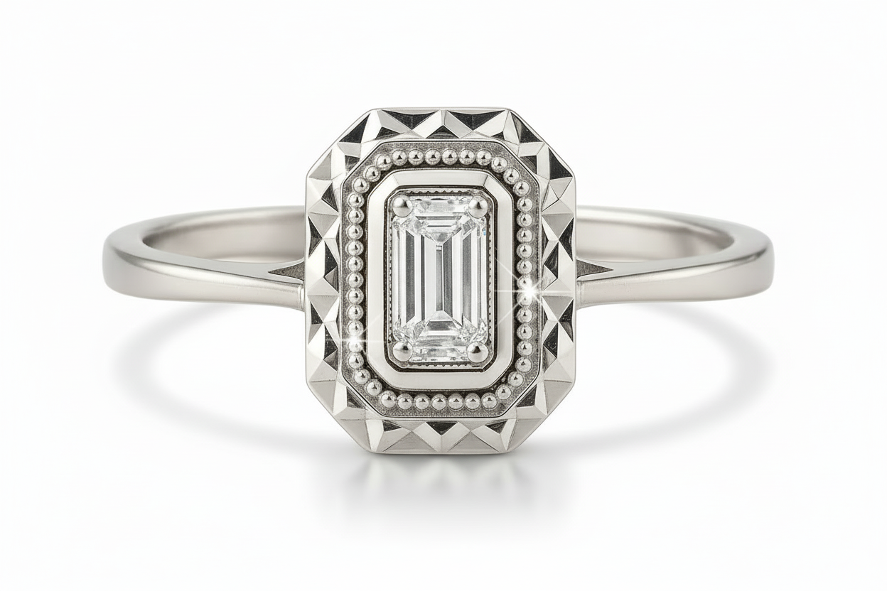 0.55 carat Emerald and Diamond ring