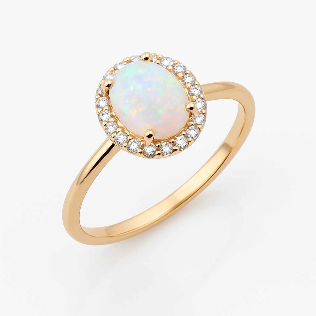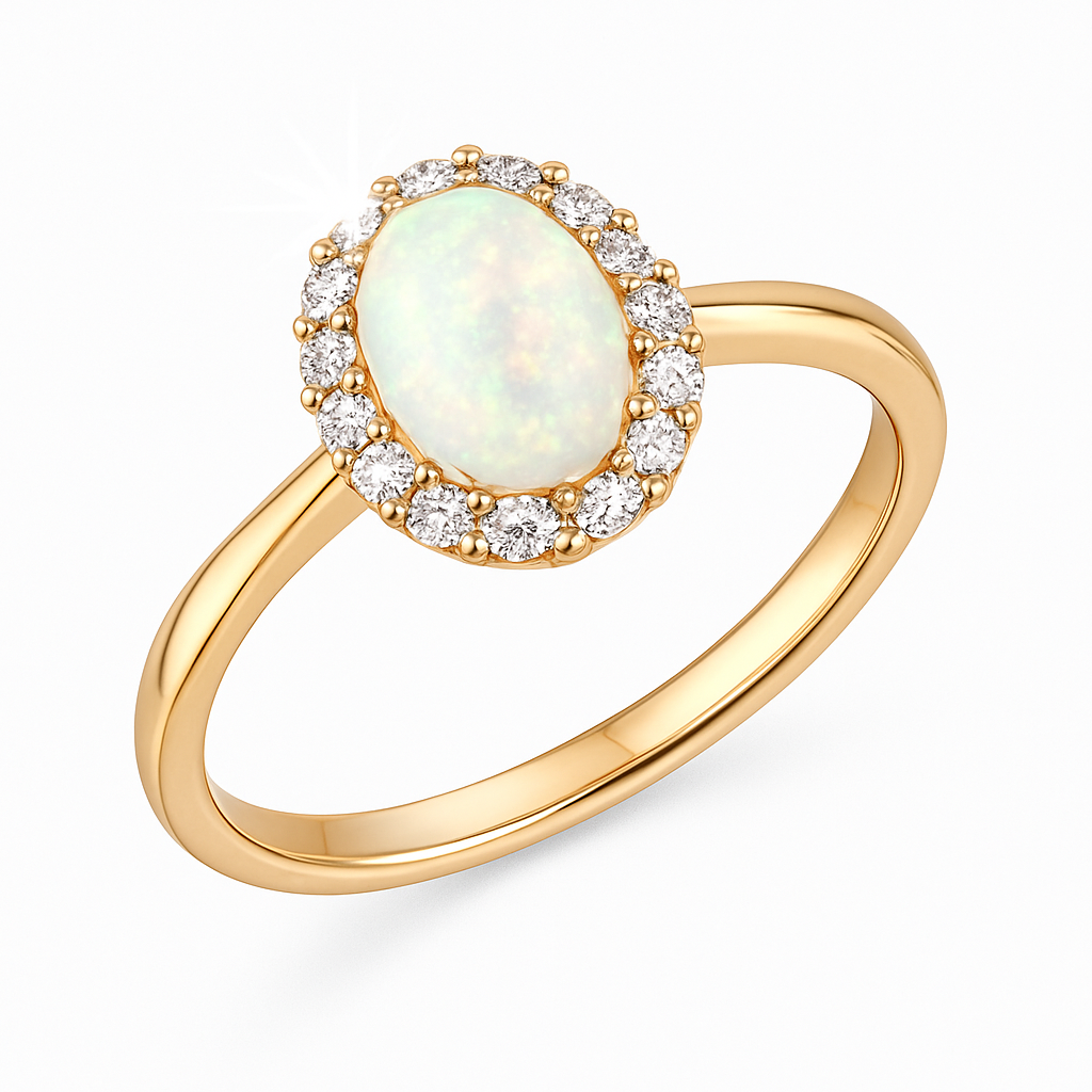 Пръстен от розово злато с опал и диаманти