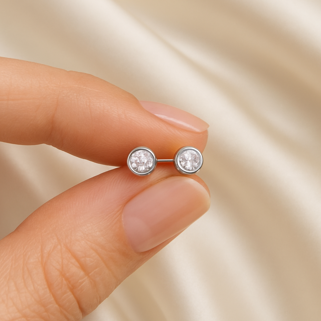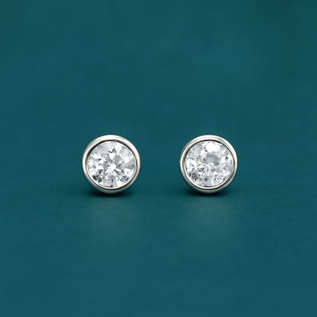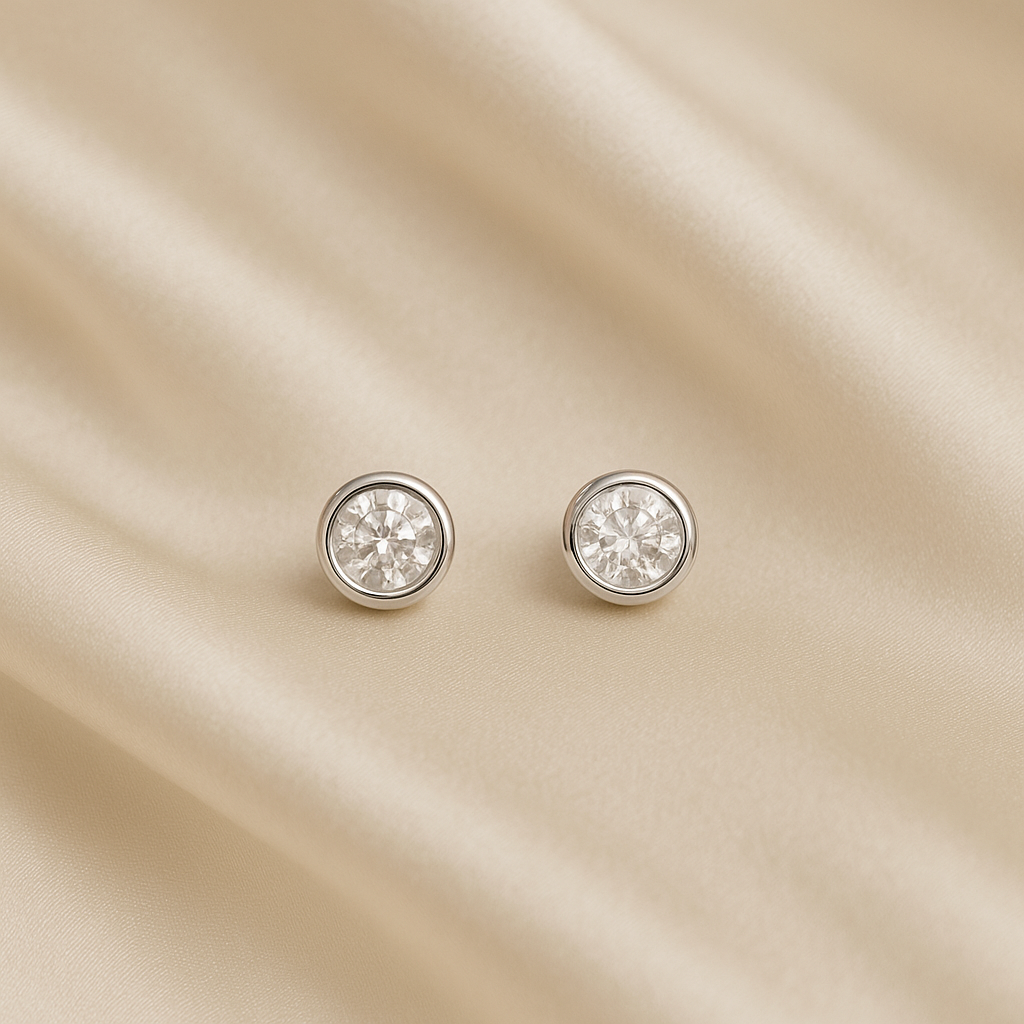 Обеци от бяло злато с диаманти в обков 0.12 карата