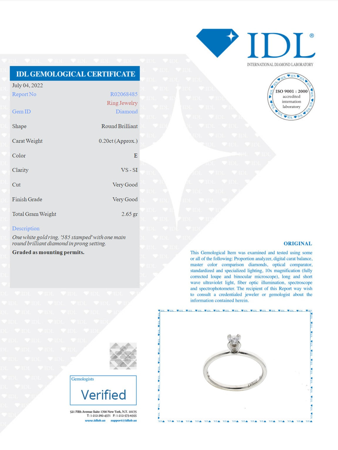 This jewel has a valid international certificate issued by the International Diamond Laboratory (IDL) .