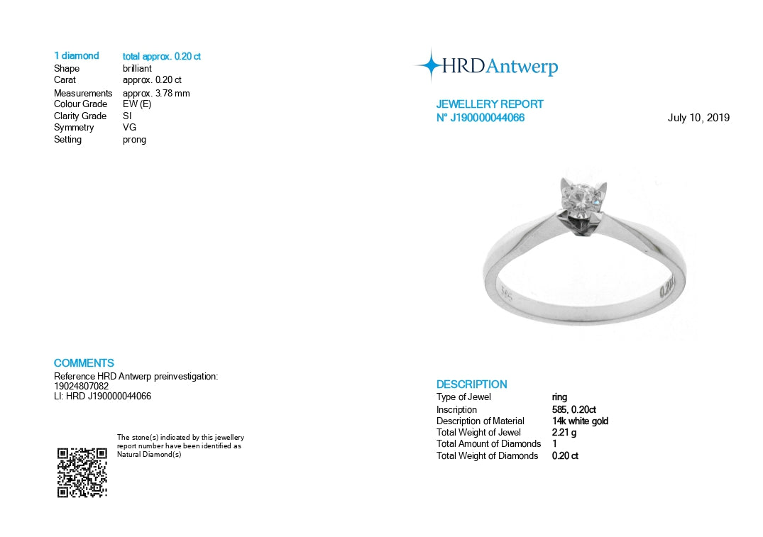 0.20 carats Diamond engagement ring HRD Certificate