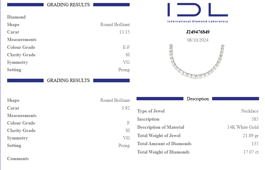 Women's necklace in white gold with diamonds 13.86 carats