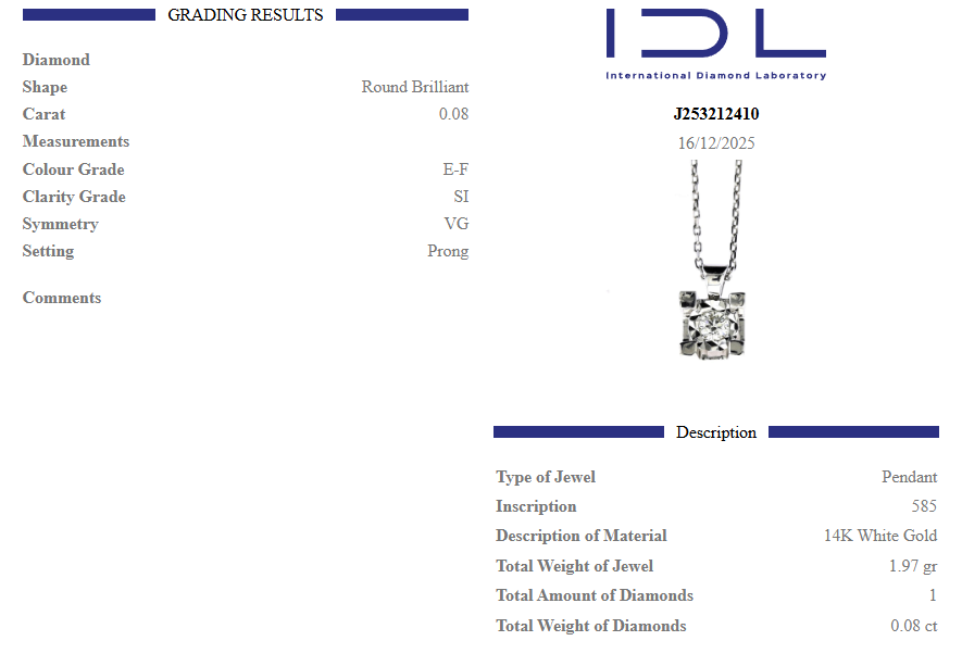 Висулка от бяло злато с диамант 0.08 карата
