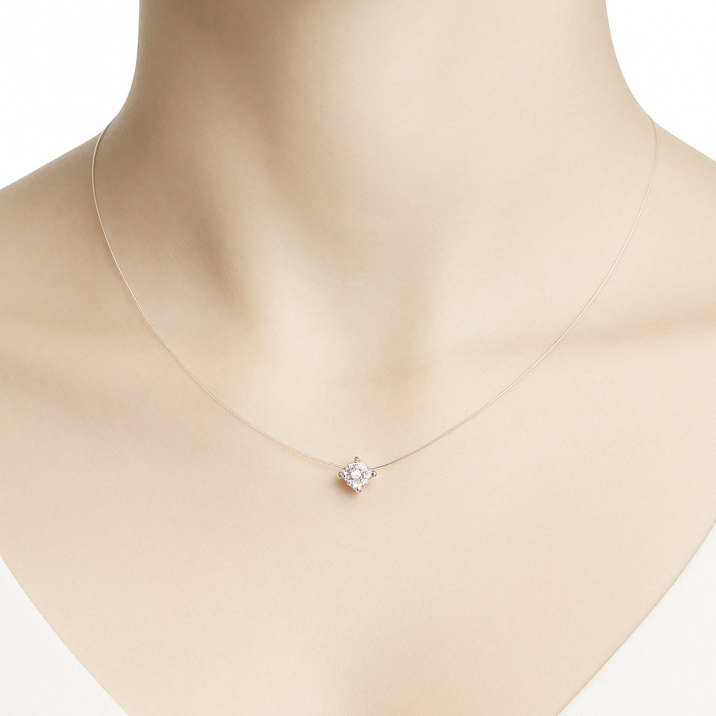 Висулка от бяло злато с диамант на корда