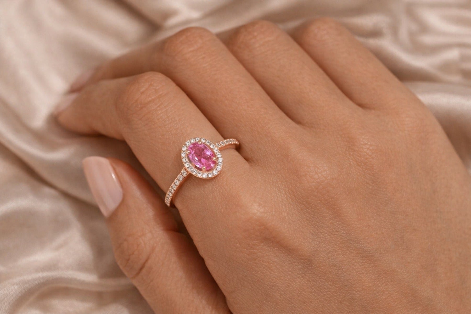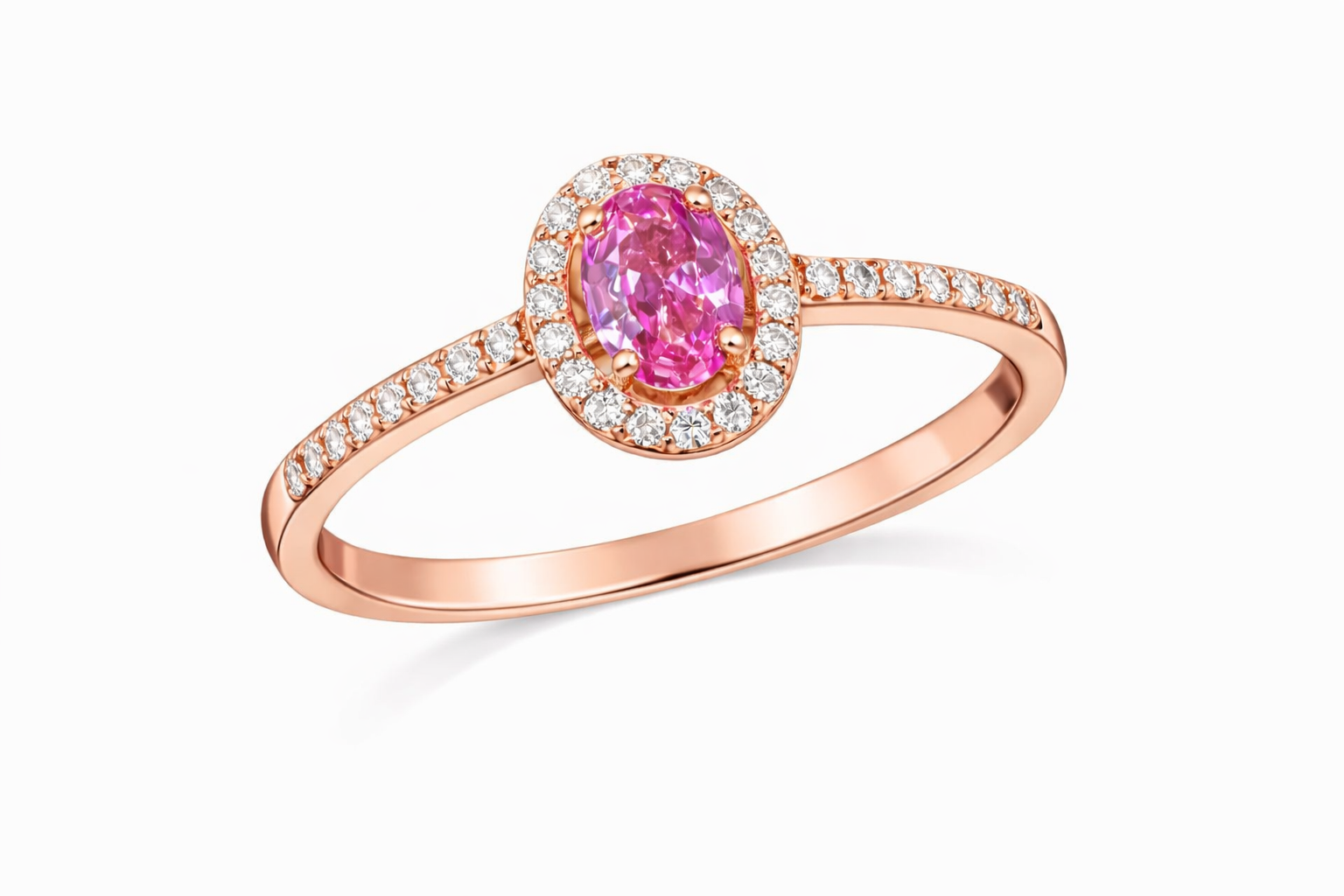 Пръстен от розово злато с розов сапфир и диаманти
