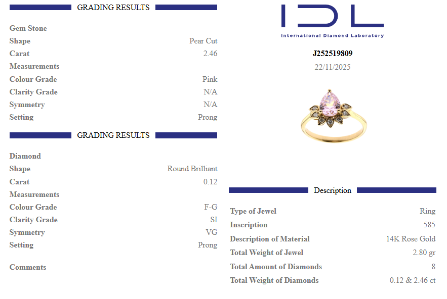 Пръстен розово злато с диаманти и розов сапфир 2.58 карата